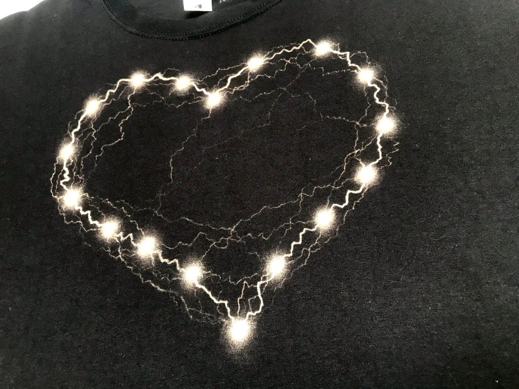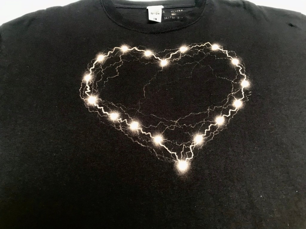electric heart £35 Electric wire glowing fairy light style heart. Also available with long sleeves here. Also did a flaming heart. Size guide. design(required) Select one option electric heart – £35 Warning size(required) Select one option S M L XL XXL XXXL Warning email(required) Warning notes or requests (I might email for clarifications) Warning Warning! continue to paymentSubmitting form Δ
