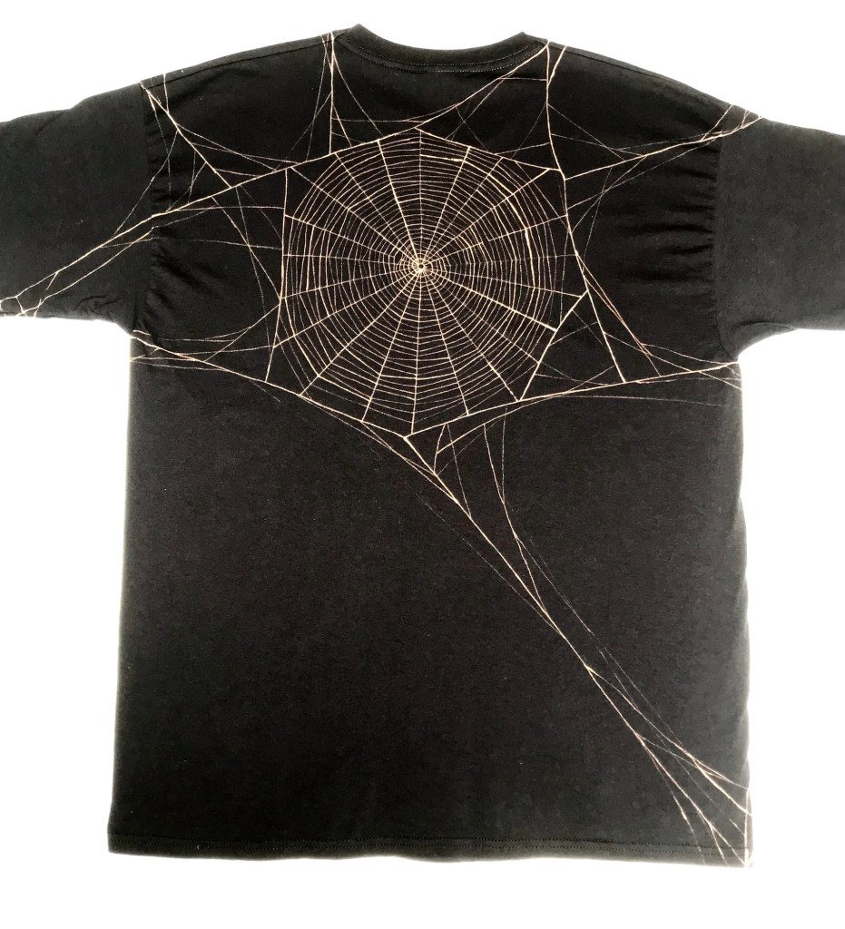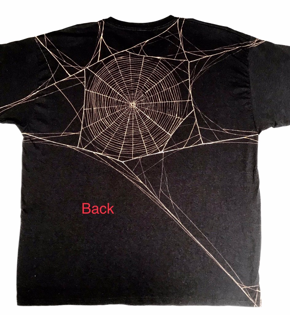 Originally done for Halloween but been popular all year round. Scroll down to have a spider web on both the front and the back. Also a long sleeved one available with webbing down the sleeve here.