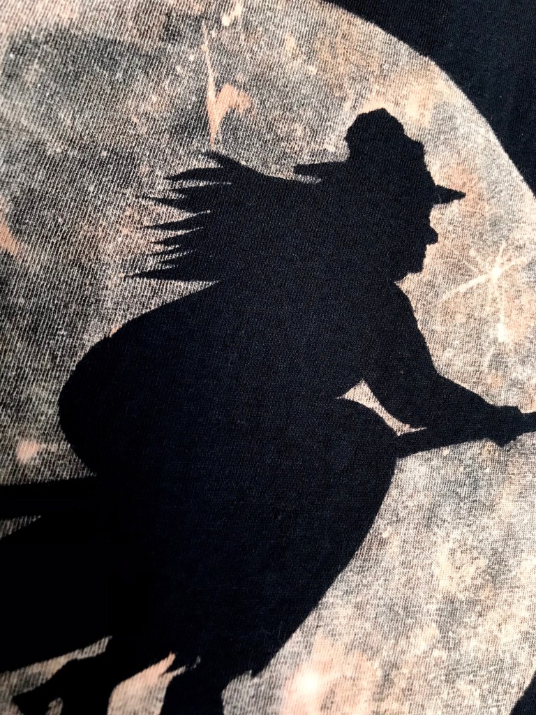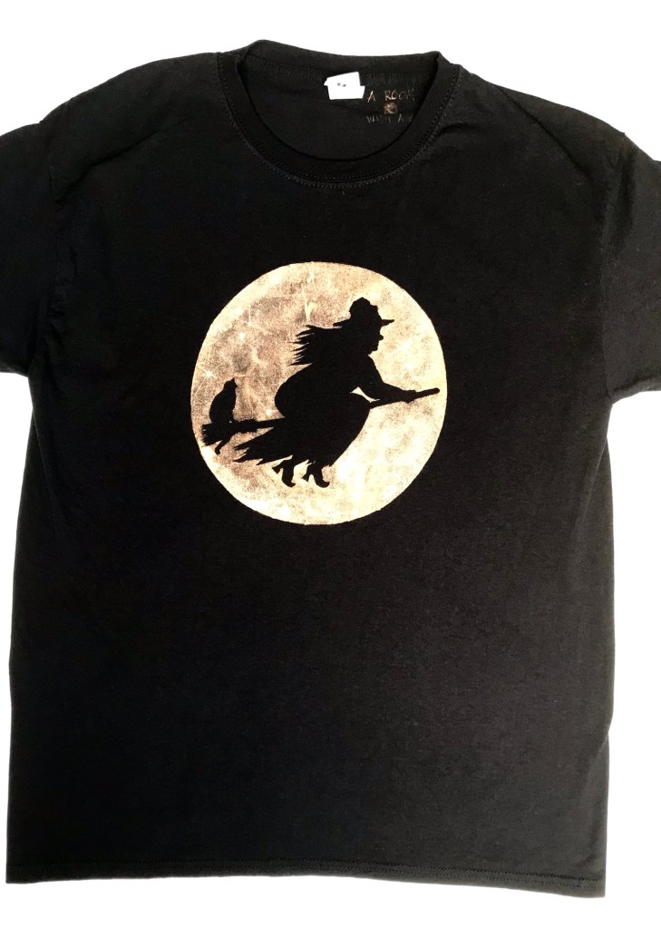 Independent woman with some knowledge of herbal remedies flying past the moon with her cat companion on the back of her broom. Also available with long sleeves here.
